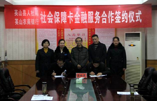 图为英山农商行领导与县人社局代表签约